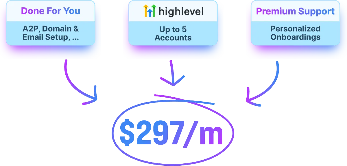 Done-for-you A2P approval, complete email domain setup, 1on1 onboardings, & ongoing real human support.